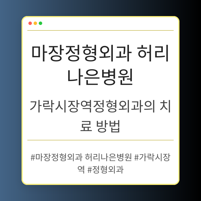 마장정형외과 허리나은병원는 가락시장역 근처에 위치하며, 다양한 정형외과적 치료 방법을 제공하고 있습니다. 보건복지부 인증 의료기관으로서 환자에게 최상의 치료를 제공하기 위해 최선을