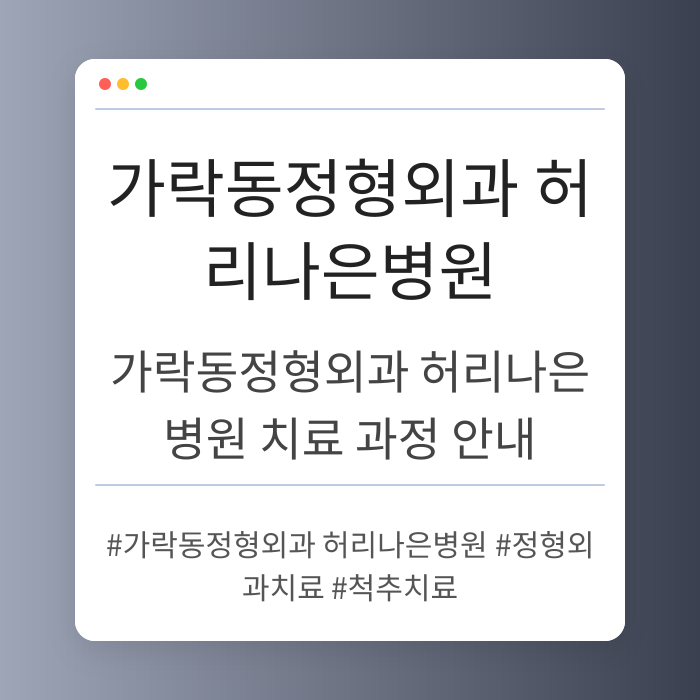 가락동정형외과 허리나은병원는 보건복지부 인증의료기관으로, 환자 중심의 척추 및 관절 치료를 제공합니다. 최고의 의료진과의 소통을 통해 맞춤형 치료를 실현합니다. 가락동정형외과 허리나은병원의