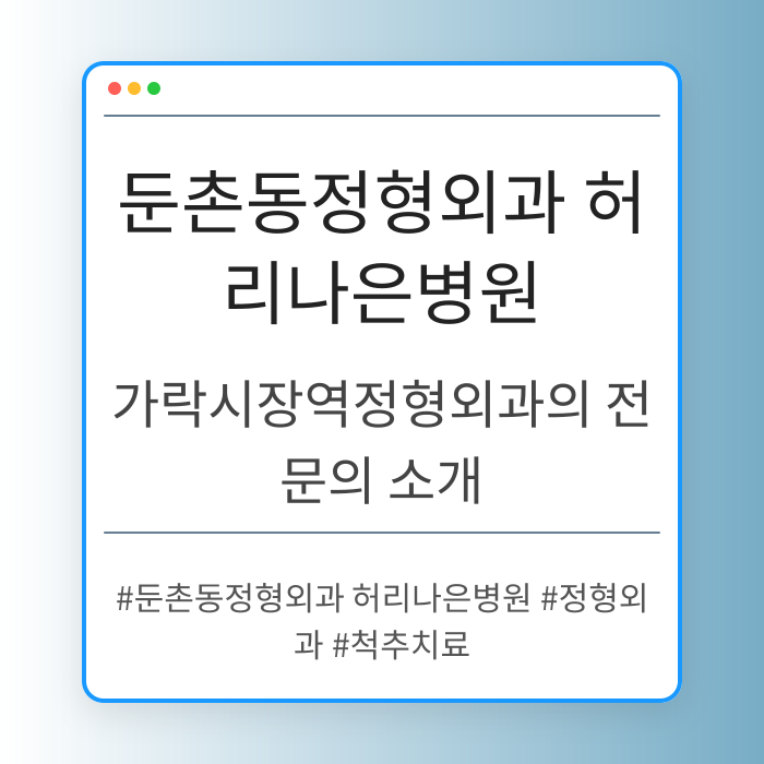 둔촌동정형외과 허리나은병원는 보건복지부 인증의료기관으로, 척추 및 관절 치료를 전문으로 합니다. 최신 의료 장비와 전문 의료진으로 환자 중심의 진료를 제공하고 있습니다.